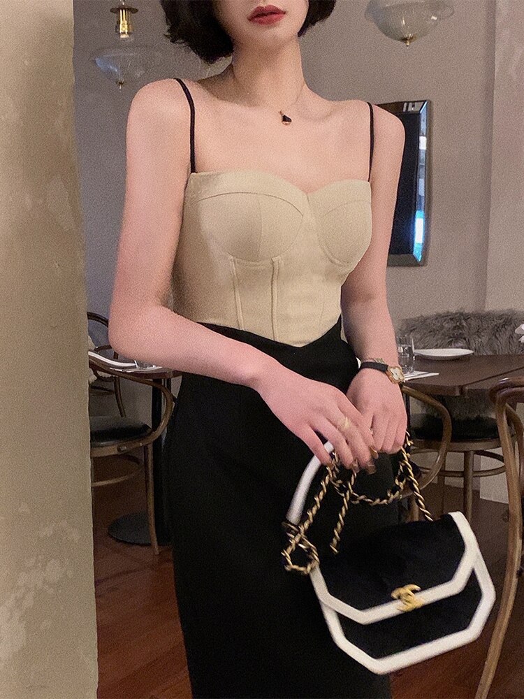 Vintage Corset Ruched Midi Dress for Women Spaghetti Strap Sexy Bodycon Elegant Party Slim One Piece Clothes Vestidos Summer Ne